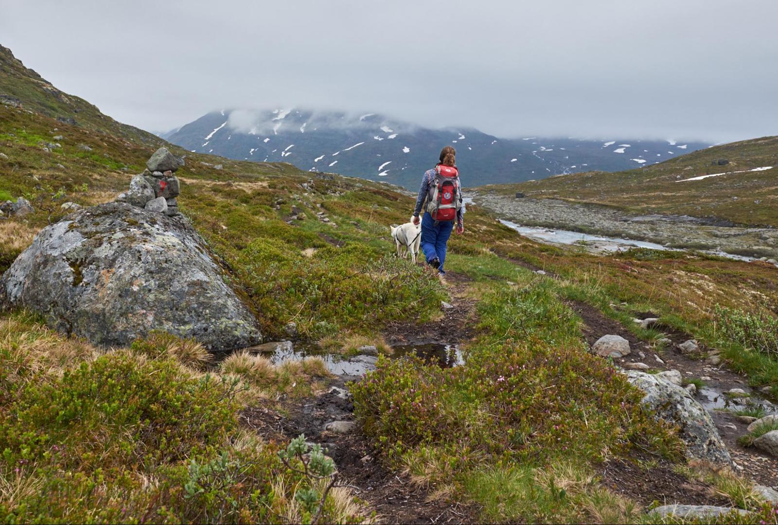 Når man forlater DNT-stien går man ut i umerket terreng, og noen partier kan være steinete og sleipe. Returner samme vei når du føler for å snu.
